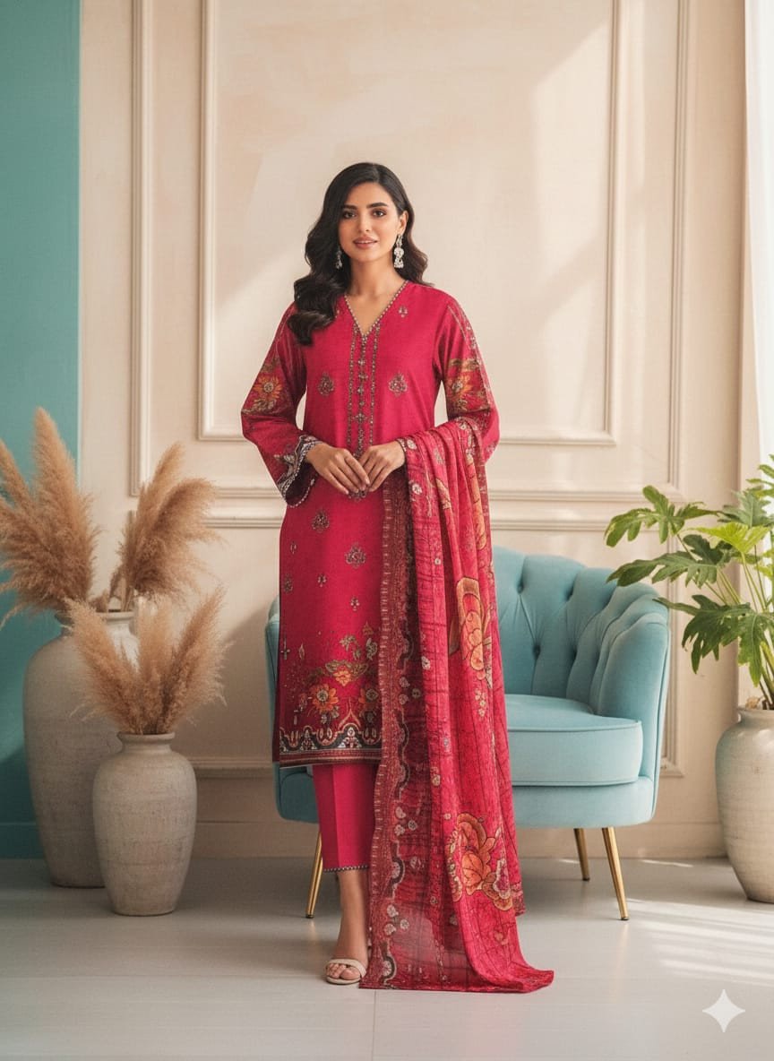 Upgrade your wardrobe with this Alkaram Stepal Linen 3PC Suit: