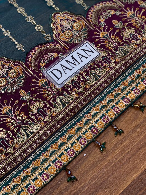 Front Full Embroidered With Sequence Work, Attached Daman With Tussles Attached