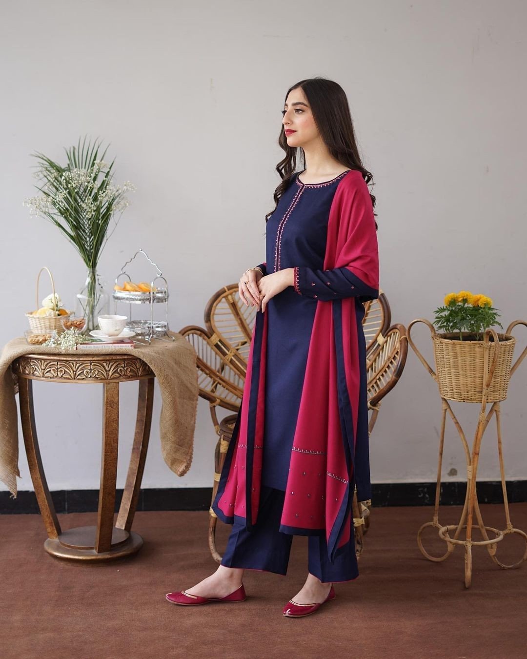 Overall look navy blue tilla embroidered