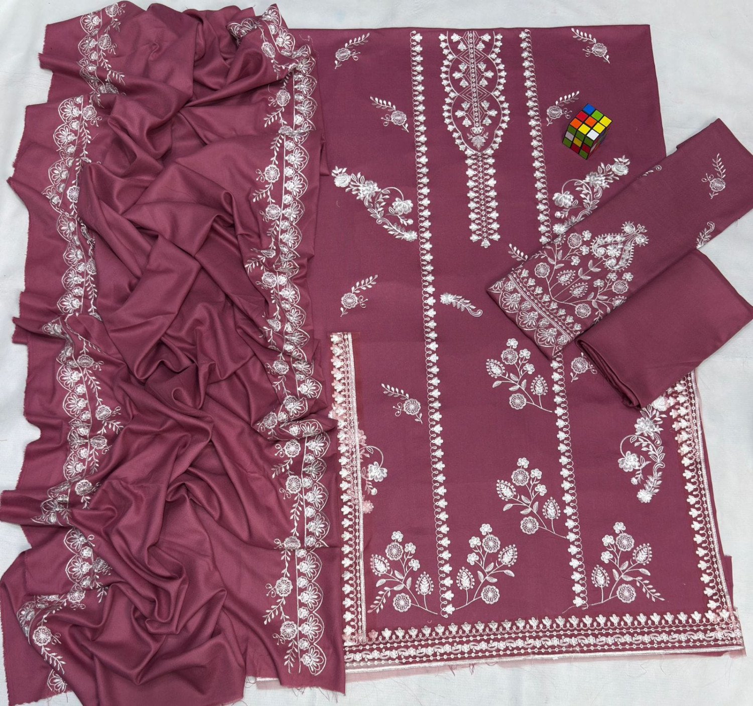 Fabric Premium 3 piece Dhanak Suit with Heavy Embroidered Shawl
