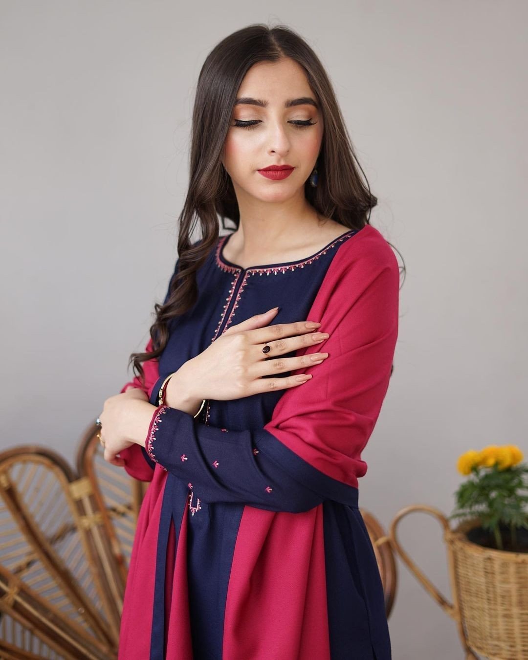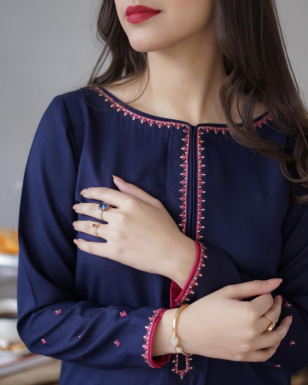 Overall look navy blue tilla embroidered